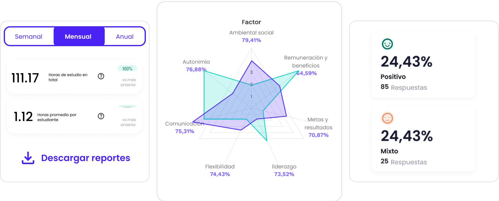 Somos el software que gestiona Administración, Aprendizaje, Clima y Desempeño, para elevar la satisfacción, compromiso y productividad de cada persona.